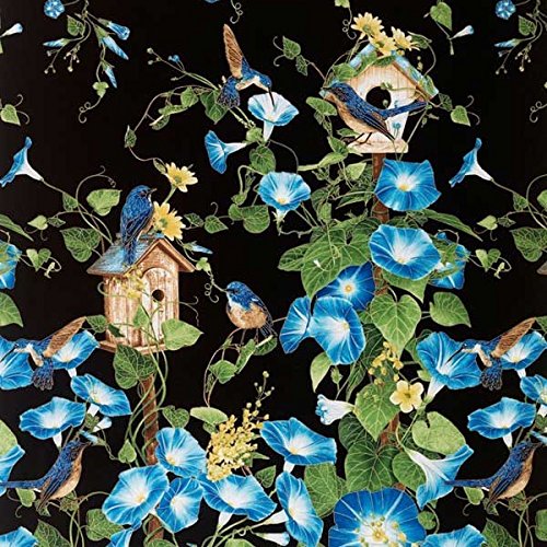 Morning Glory and Birds Panel 24" x 44" Cotton Fabric by Timeless Treasures