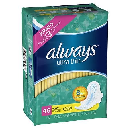 Product DescriptionAlways Ultra Thin Pads with Wings Unscented, Regular0