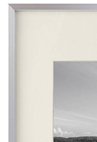 Frametory, 8x10 Table-Top Metal Picture Frame Collection, Aluminum Photo Frame with Ivory Color Mat for 5x7 Picture & Real Glass (Silver)