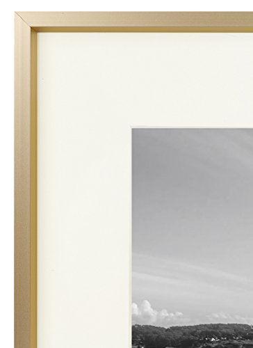 Frametory, 8x10 Table-Top Metal Picture Frame Collection, Aluminum Photo Frame with Ivory Color Mat for 5x7 Picture & Real Glass (Gold)