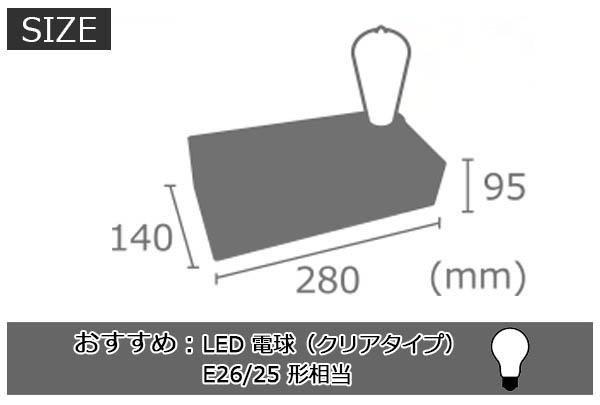 | サイズ | W280×D140×H95mm(電球含まず)、トレー:W150×D100×H25mm、コード長:2000mm 個装サイズ:33×25×20cm |