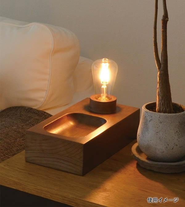 | 天然木を使用した、シンプルであたたかみのあるデザインが特長のトレー付きテーブルライトです。 |