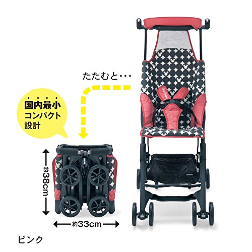 コンパクトさがここまで進化!驚きの国内最小クラス。たたんで国内最小になる超コンパクト設計。収納袋に入れて、肩掛けして持ち運べる新発想のベビーカー。たたむのも開くのもサッと簡単に、ベビーとの外出の苦労がグンと軽減。買えるのはここだけのディズニーデザインにも注目。 (C)Disney
