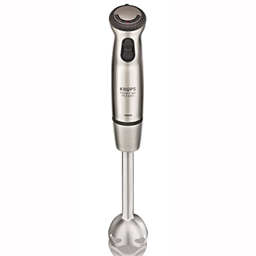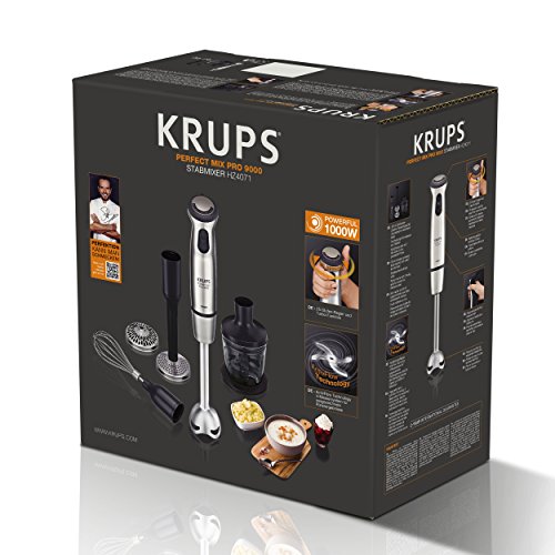 Krups HZ4071 Stabmixer Perfect Mix Pro 9000 inkl. Mixbecher, Mini-Zerkleinerer, Schneebesen, Kartoffelstampfer, 4-Messer, 20 Geschwindigkeitsstufen, Turbostufe, 1000 W, grau / edel