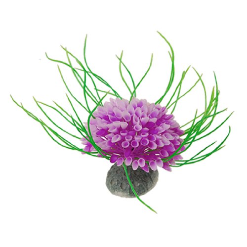 -. Feature : Product Name: Aquarium Plastic Plants / Material: Plastic, Ceramic / Base Size: 5.7 x 4.5cm/1.4" x 0.8" (L x W) / Overall Size (Approx.): 8 x 11.5cm/3.1" x 4.5" (D x Max.H) / Main Color: Purple, White, Green; Net Weight: 62g; Package Content: 1 x Plastic Plants