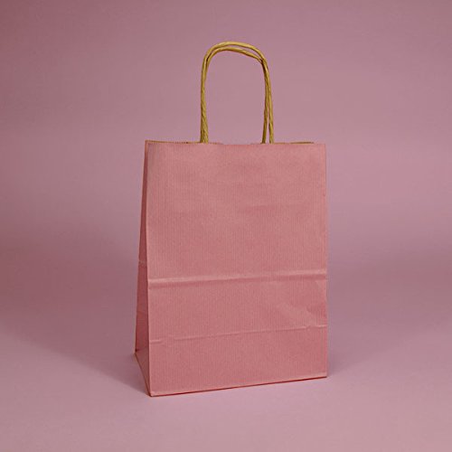 - Twisted brown upright handle shopping bags made of 95% post-consumer 5% post industrial kraft on the inside and premium striped flat color tint on the outside.