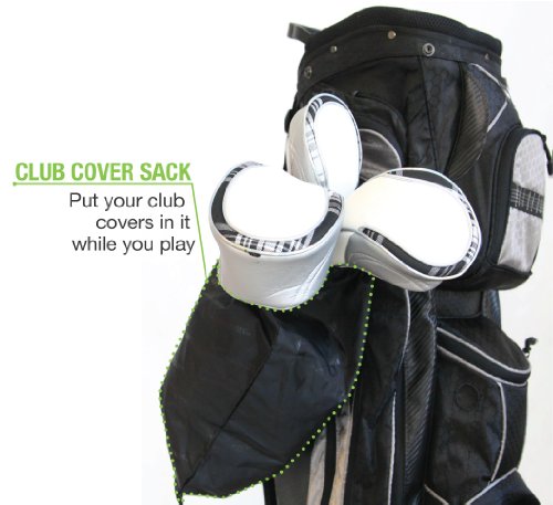 The Wellzher Blake Cart Golf Bag is definitely golf cart friendly. This light weight 5.6 lbs. golf cart bag with an ergonomic handle creates efficiency for loading and transporting the bag, while the hidden strap tunnel keeps the strap secured and tangle-free. The Blake accommodates the player who loves lots of pockets with 12 pockets, (10 being zippered) to keep items organized. Available in three sets of stylish colors, the Blake will catch eyes from a distance whether it rides in the golf cart or stands on the golf field.Feature