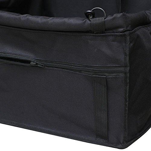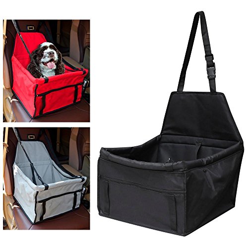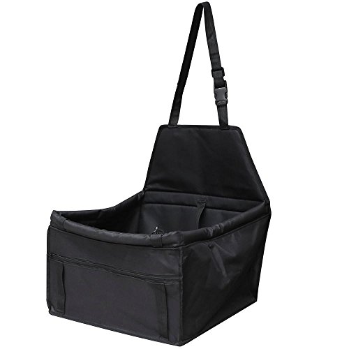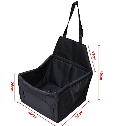 Studio : Topeakmart Publisher : Topeakmart Product Description 100% brand new dog cat car seat Perfect for holding dogs and cats of small and medium size Attachable to most front/back car seats with headrests Made of durable 600D Oxford Cloth, PVC coated Sturdy floor and softly padded back offers maximum comfort Thickened soft edges for added safety and protection Built-in adjustable back strap attaches to headrest or as shoulder strap Tough quick-release snap buckles, easy to install Removable strap at the front with metal hooks Safe metal rings for attaching the front strap Zippered storage pockets small pet essentials Adjustable interior tether attaches to pet collar/harness to secure Quick and easy installation Washable construction, folds away for easy storage. Material: Oxford Cloth,Sponge Dimensions: 40×35×25-45 cm/15.7×13.8×10-17.7inch(L×W×H)G.W: Approx 0.65 kg /1.43 LB