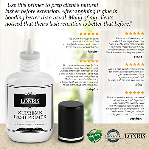 ★SAFETY & QUALITY : Lonris Lash Primer is ultimately protecting both you and your client. It has been tested and approved to medical standard ISO 9001:2008, ISO 14001:2004 and ITQA approved.