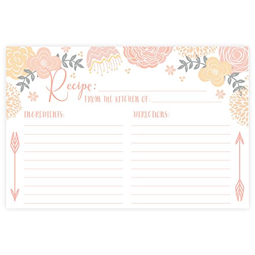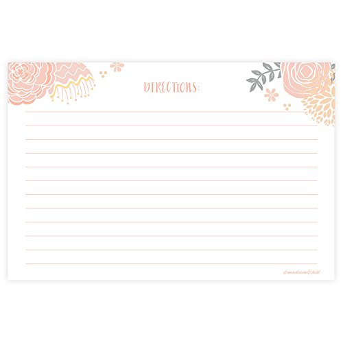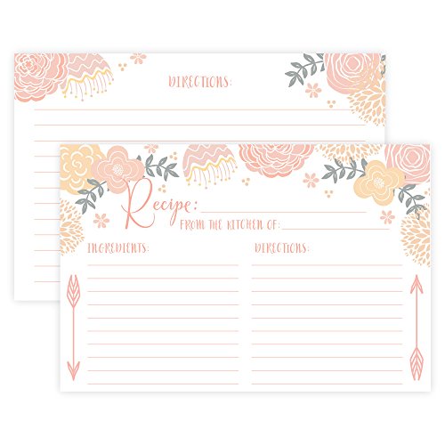 Pink Floral Recipe Cards (Set of 50) 4 x 6 Double Sided Cards