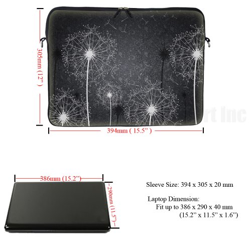 -. Binding : Personal Computers -. Brand : Meffort Inc -. Color : White -. EAN : 0765573880830 -. Feature : Hydrophobic (water resistance) neoprene material, w. reinforced dual zipper to secure your device / High quality P.R.Inting on both side of the bag with laptop edge guard / Fits laptop size up to 15.6", Fits laptop dimension up to: 15.2" (385mm) x 11.5" (290mm) / Item can be use as shoulder bag w. strap in use or can be use as carrying bag (Hidden Handle) or Sleeve / Note: zipper will not close fully when hidden handle is in use, but it doesn't affect functionality -. Label : Meffort Inc -. Manufacturer : Meffort Inc -. Model : GStrap2704 -. MPN : GStrap2704 -. PartNumber : GStrap2704 -. ProductGroup : PC Accessory -. ProductTypeName : CARRYING_CASE_OR_BAG -. Publisher : Meffort Inc -. Studio : Meffort Inc -. Title : Meffort Inc 15 15.6 inch Neoprene Laptop Sleeve Bag Carrying Case with Hidden Handle and Adjustable Shoulder Strap - Black White Dandelion Design -. UPC : 765573880830