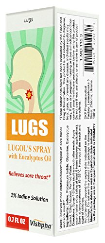Studio : Vishpha Publisher : Vishpha Binding : Health and Beauty Product Description In 1880 a French physician, named Lugol, originated a solution, which contains 5% of elemental iodine in a 10% solution of potassium iodide. It has been used steadily ever since it was originated. Lugol's 1% Iodine Solution with Glycerin and Eucalyptus extract is a safe effective way to relieve the symptoms of sore throat. Eucalyptus is one of the oldest native medicines used in Australia. Eucalyptus contains cineole, a powerful antiseptic that makes it a good remedy to have around during cold and flu season. Iodine has great antiseptic properties while glycerine moisturizes and soothes inflamed throat.* 0