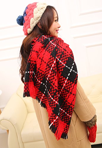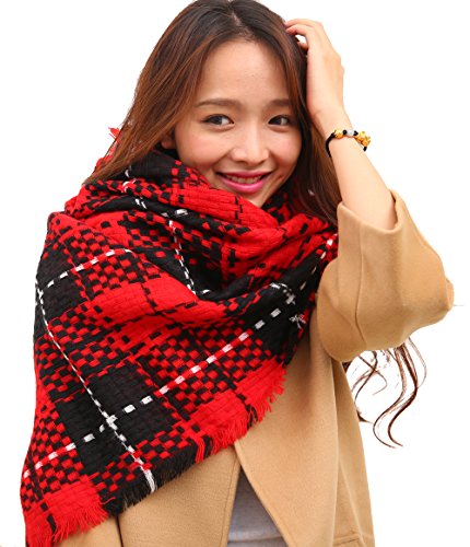 Title : Anboor Thick Plaid Knitted Blanket Scarf with Tassel Tartan Warm Shawl for Women, Red-Black