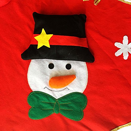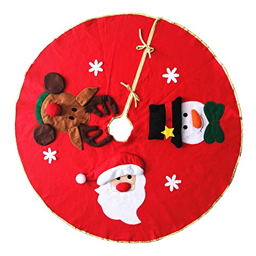LAWOHO Christmas Tree Skirt - Circular Xmas Tree Decoration with Gold Trim, Santa Clause & Reindeer & Snowman Design, Red - 39 Inches