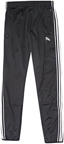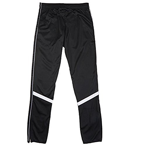 COUGAR MEN'S ATHLETIC ELASTIC WAIST TRAINING TRACK PANTS BLACK WHITE STRIPES