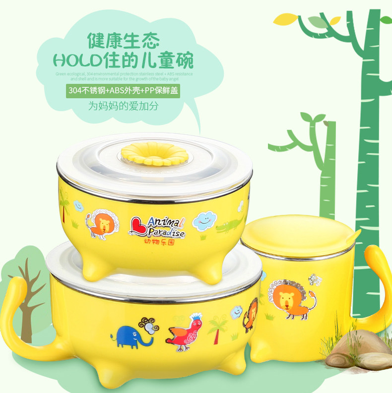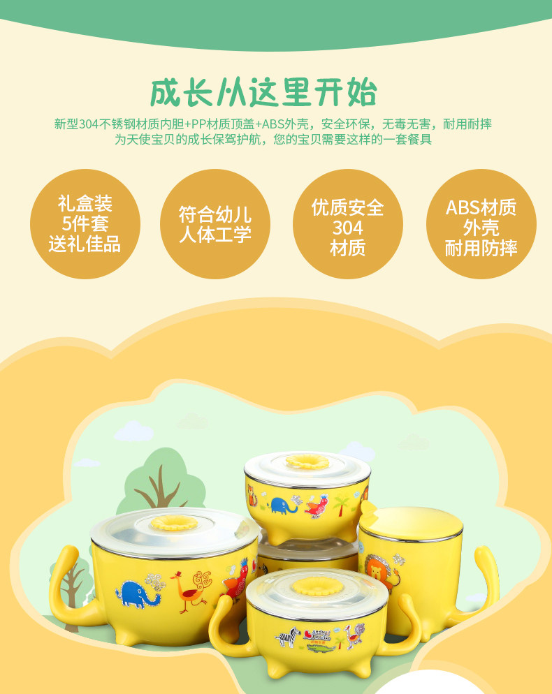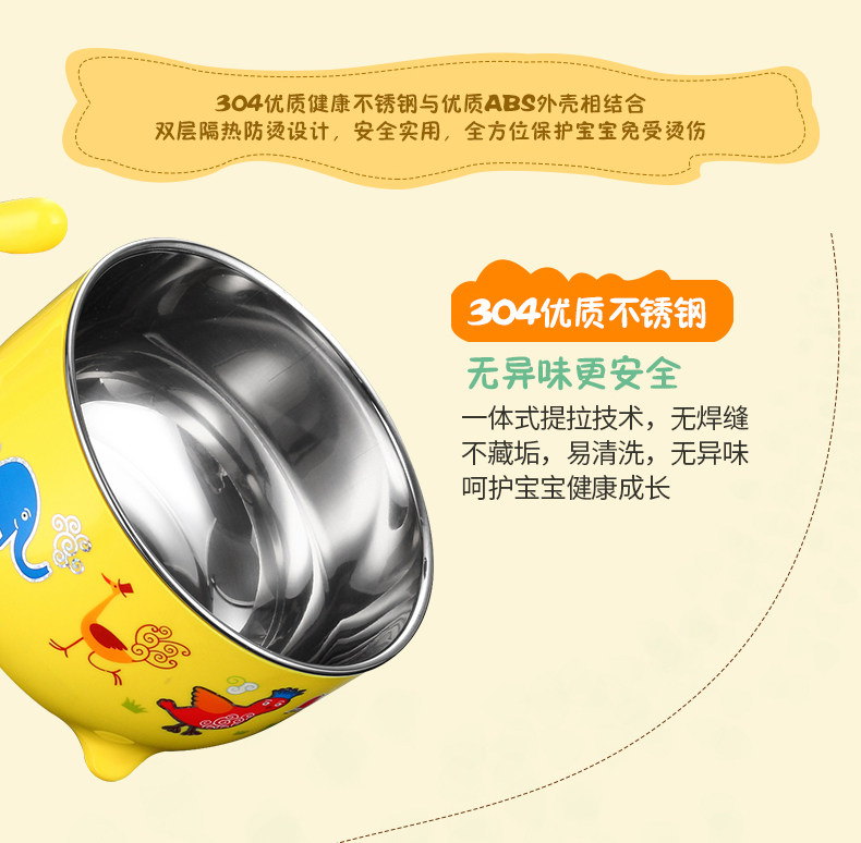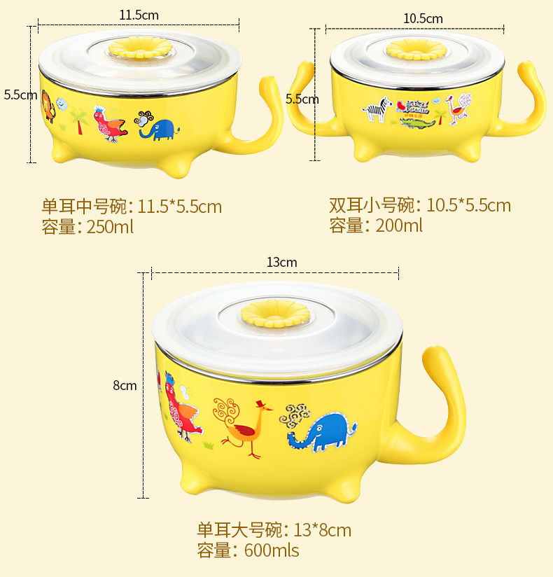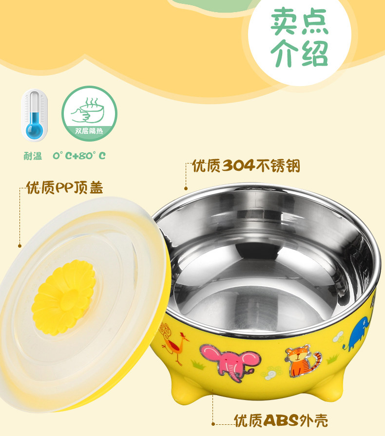 儿童不锈钢碗 宝宝吃饭汤碗 小孩保温餐具 防摔带盖子辅食碗