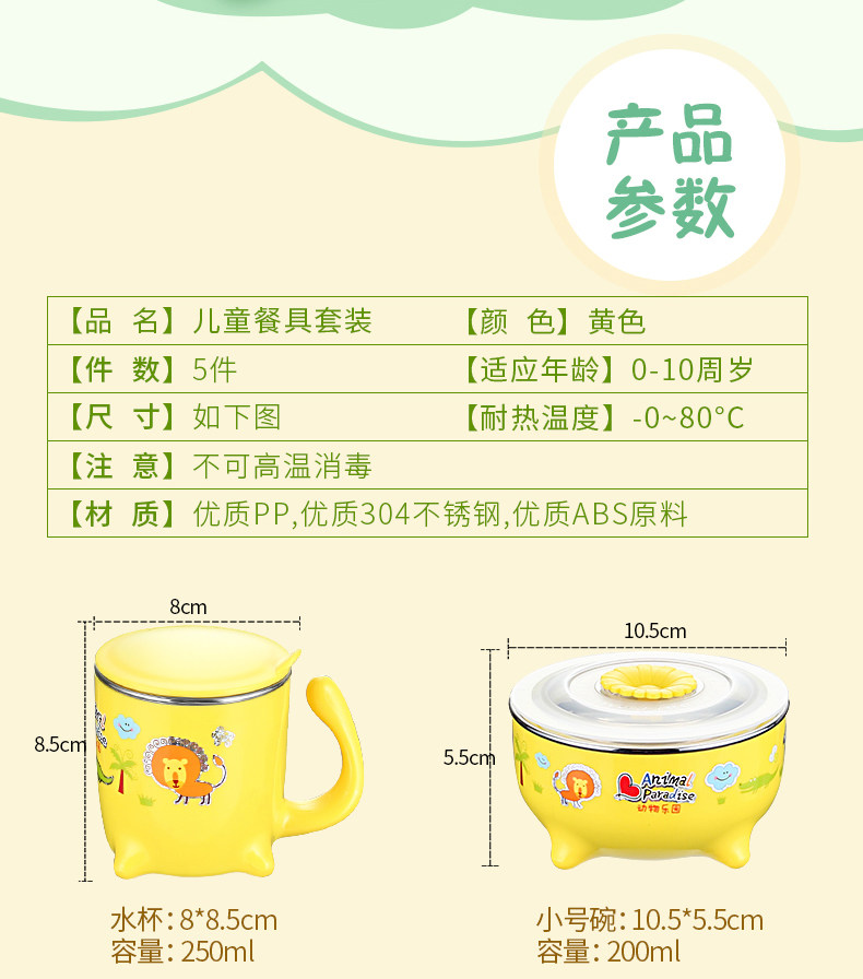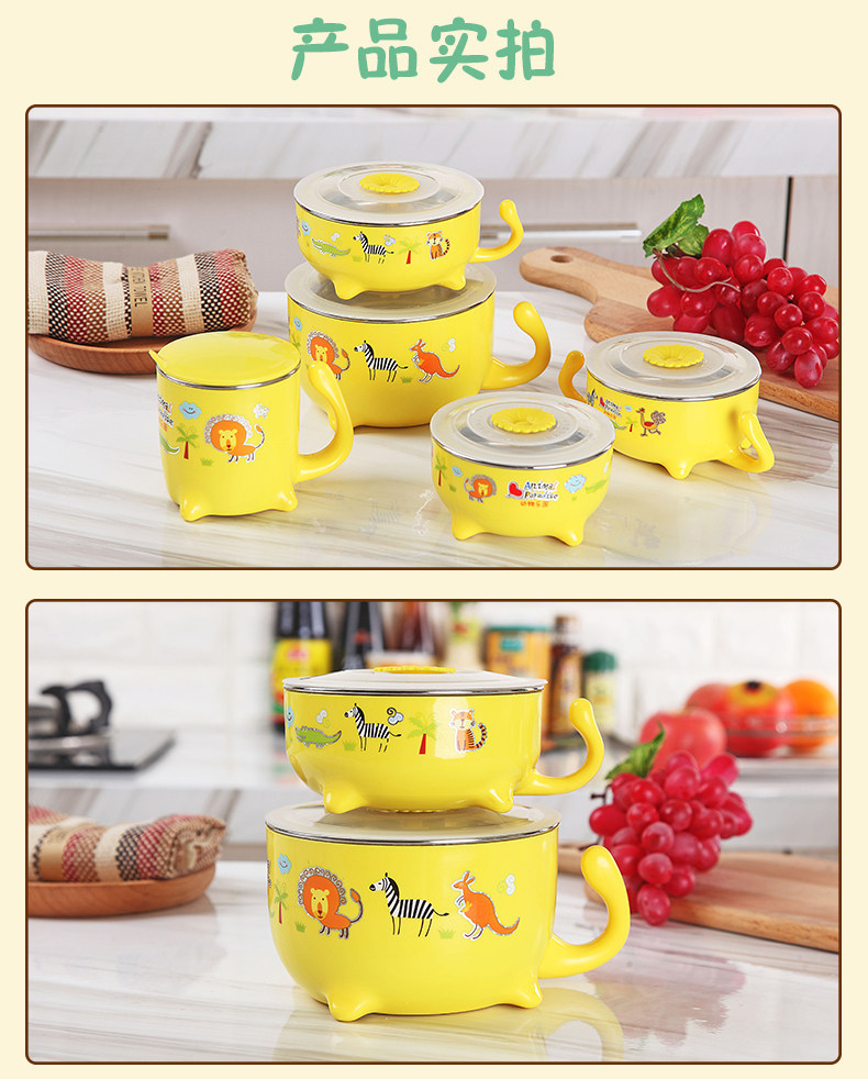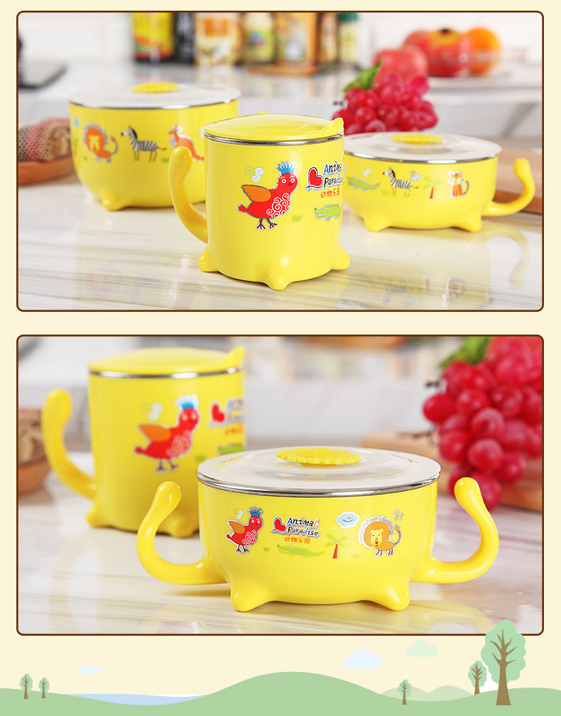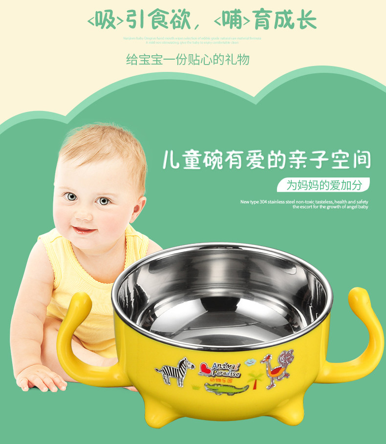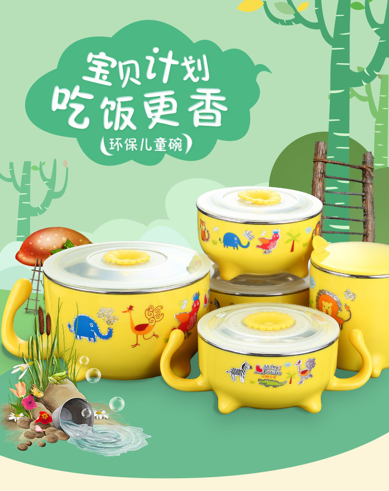 儿童不锈钢碗 宝宝吃饭汤碗 小孩保温餐具 防摔带盖子辅食碗