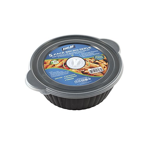 Convenient food storage: pack of 5 round micro-serve food storage, 6.75 cups capacity. Perfect Size for meal prep and leftover food storage like Salad and Pasta