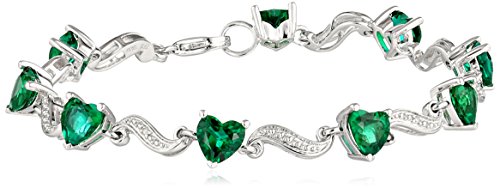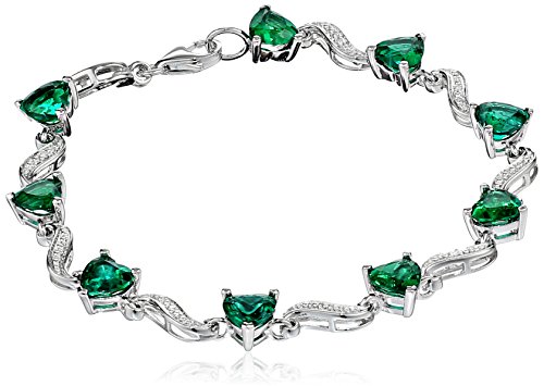 Sterling Silver Created Emerald and Diamond Accent Heart Wave Bracelet, 7.25"