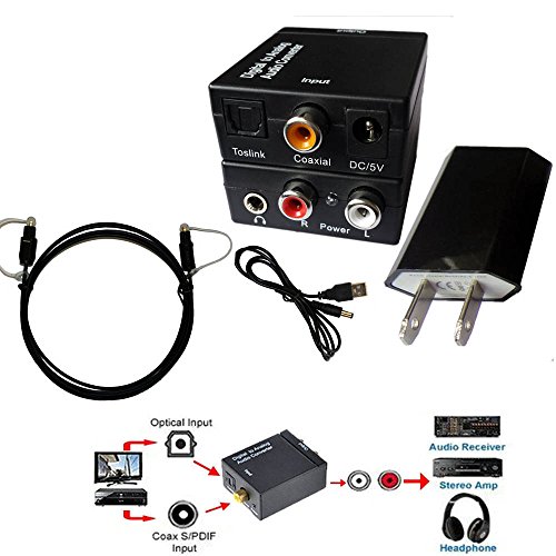 Easyday Digital Optical Optic to Analog RCA L/R Stereo Audio Converter Adapter - Changes Digital Coaxial or Optical SPDIF into Stereo 3.5mm Jack L/R RCA Audio Outputs Includes AC Power Cable