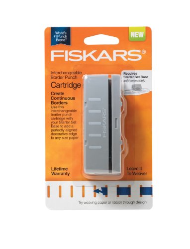 -. Binding : Kitchen -. Brand : Fiskars -. EAN : 0020335042810 -. Feature : Ideal for adding a decorative border to a paper craft project, then switching the cartridge to add a different design to your next project / Requires the Interchangeable Border Punch Starter Set base, not included / Works with AdvantEdge Punch System Starter Set, not included / Cartridges stack for space saving storage and easy transport -. Label : Fiskars Garden -. Manufacturer : Fiskars Garden -. Model : 101850-1001 -. MPN : 101850-1001 -. PackageQuantity : 1 -. PartNumber : 101850-1001 -. ProductGroup : Art and Craft Supply -. ProductTypeName : HOME -. Publisher : Fiskars Garden -. Studio : Fiskars Garden -. Title : Fiskars Crafts 101850-1001 Interchangeable Border Punch, Leave it to Weaver -. UPC : 020335042810
