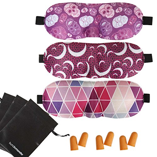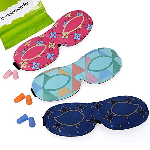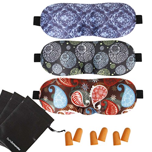Each bundle comes with 3 sleeping masks, 3 pairs of ear plugs, and 3 carrying case pouches.