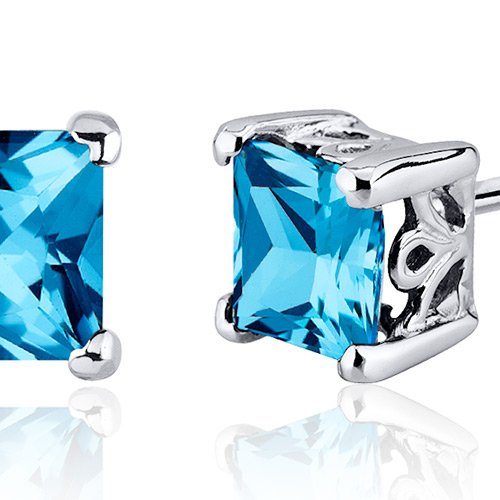 Center Stone: 2 Pieces Genuine Swiss Blue Topaz, Princess Cut 6 mm, 2.50 carats total weight, Lagoon Blue Hue with Brilliant Sparkle. Earrings: 2.50 grams, Pure Sterling Silver Rhodium Nickel Finish with .925 stamp, Earrings feature Stud posts with Bullet backs, exceptional Design, Craftsmanship and Rhodium Nickel Finishing. Perfect gift for Mothers Day, Birthdays, Valentines Day, Graduation, Christmas or just about any other occasion. Money Back Guarantee. Includes a Signature Gift Box & style SE8020Feature