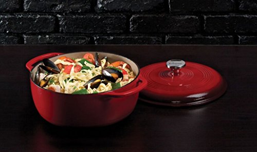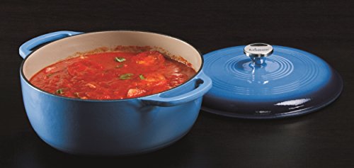 • 6-quart Dutch oven made of cast iron with chip-resistant porcelain-enamel finish