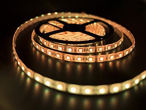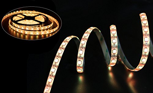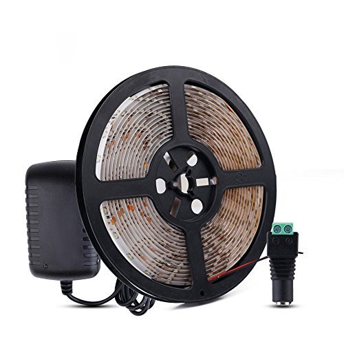 Sanwo Warm White LED Light Strips, 300 Units SMD 3528 Leds, 16.5ft, Waterproof IP65, LED Ribbon with 12V Power Supply Adapter for Decoration Lighting