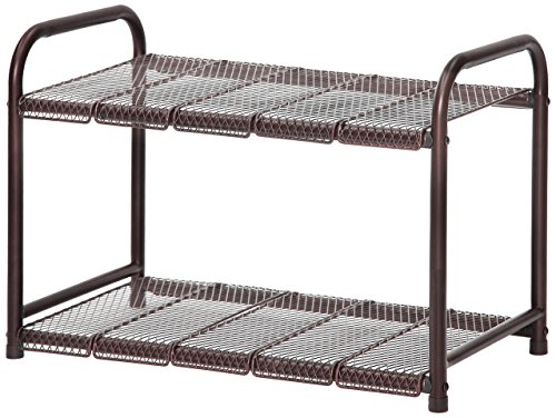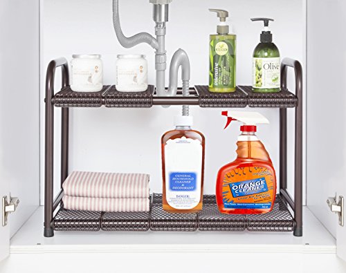 StorageManiac Under Sink 2 Tier Expandable Shelf Organizer with Removable Steel Panels, Bronze