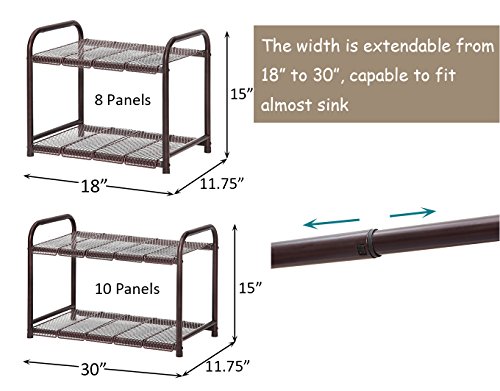 EXTENDABLE IN WIDTH - Horizontal Expandable from 18" to 30", capable to fit almost any sink; The height of the shelf is not adjustable, but we are improving and expecting to bring you a satisfying shopping experience later