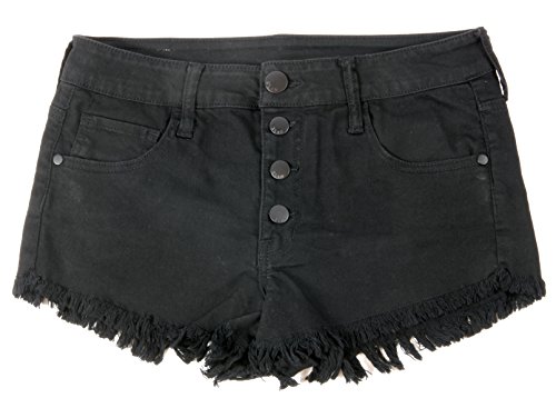 Stretch Denim shorts with cut off fringe bottom and button fly