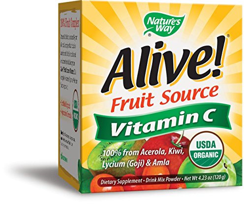 -. Feature : Vitamin C in fruit is naturally part of a total complex that includes ascorbic acid, bioflavonoids and other co-factors that aid absorption / Alive! Fruit Source Vitamin C is complete Vitamin C just as Mother Nature grows it. / Unlike other dietary supplements that use isolated ascorbic acid or cultured bacteria as their sources of vitamin C, Alive! Fruit Source Vitamin C derives its entire vitamin C content from four of Mother Nature's most potent organic fruit sources: Organic Acerola, Organic Kiwi, Organic Amla, and Organic Lycium (Goji).