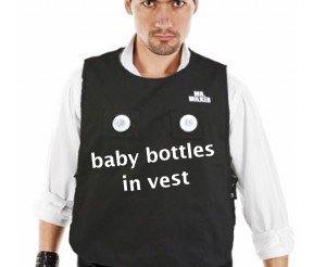 -. Feature : Now Men Can Breastfeed / Baby Shower Gag Gift / Fathers Can Breastfeed / "It was the hit of the baby shower" / Baby bottles included in the vest