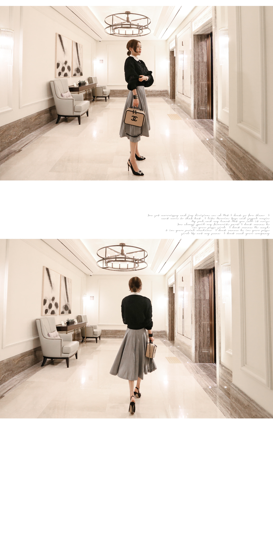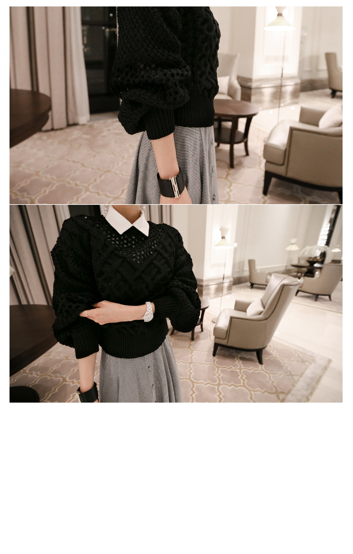 밑단과 소매단에 시보리처리로 안정감있게 잡아주며 전체적인 라인을 살려줍니다