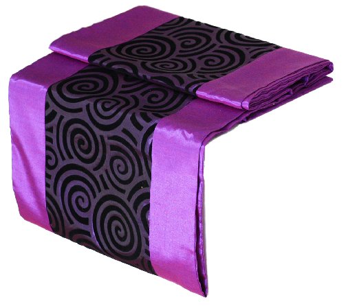 ARTIWA VIOLET PURPLE & BLACK SPIRAL SILK DECORATIVE TABLE RUNNER & BED RUNNER SCARF FOR KING QUEEN SIZE BED 120 IN.