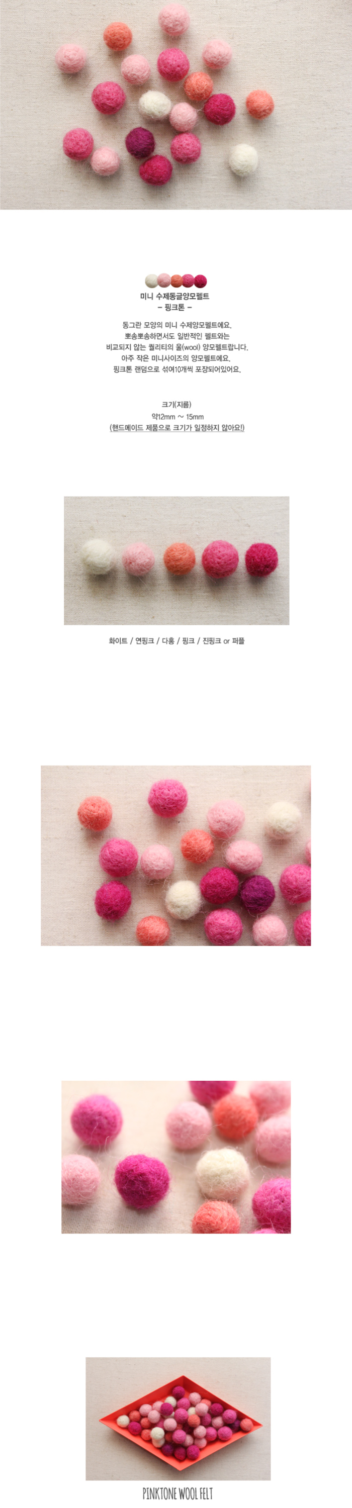 상품명 : 미니수제동글양모펠트[핑크톤]_10p