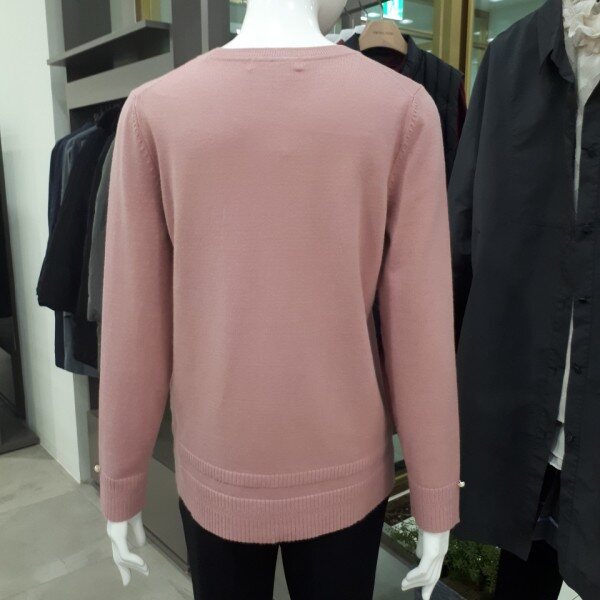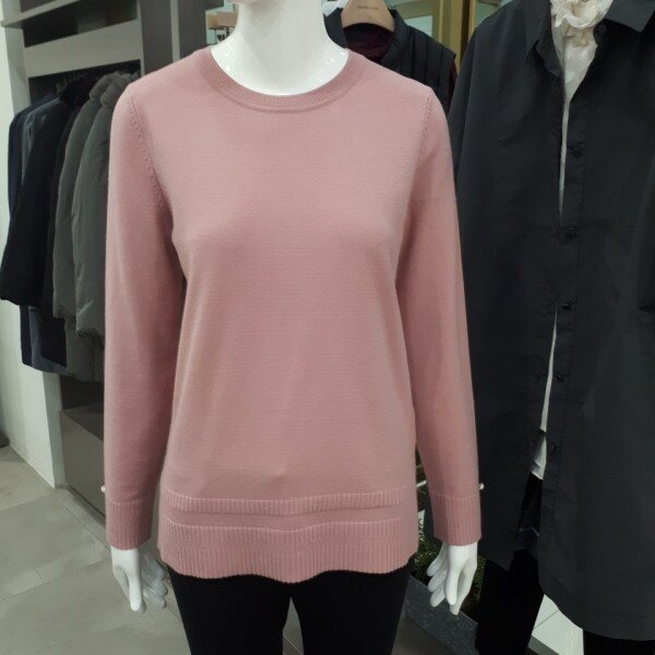 소매진주장식으로 포인트를 준 라운드 니트 티 입니다