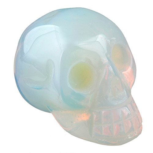 rockcloud Healing Crystal Stone Human Reiki Skull Figurine Statue Sculptures Opalite 1.5"