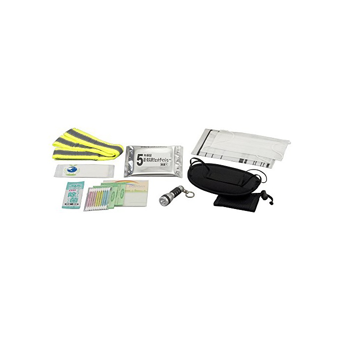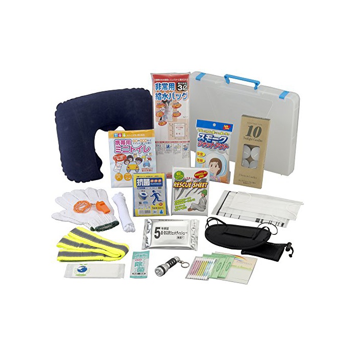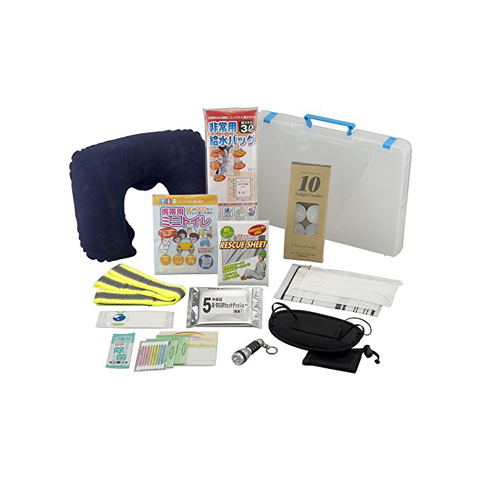 세트 내용:A4파일 케이스,구출 씨트,휴대용 미니 화장실,핸디 라이트,반사 안전《다스키》,T 라이트 캔들(양초)10P,제균젤,비상용 급수 백3L,에어 베개,eco편리 백,방재용 웨트(wet) 티슈,아이마스《구》 (메쉬 케이스 첨부 와) 고, 마스크 케이스 (마스크2 매부착) 고, 면봉10P,반창고5매