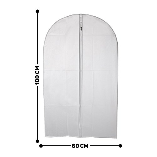 -. Feature : PACKAGE INCLUSION : Each purchase includes a set of 5 Superior Quality, Durable PEVA Clear Garment Bags, Suit Bags, Suit Carriers ideal for storage and travel. Ideal size for suits, shirts, trousers, tops, sport coats etc. SIZE: 100CM * 60 CM (39 inches * 24 inches). / CLEAR GARMENT COVER : You don't need to open the bag to know what is inside. You can find your clothing conveniently and quickly with these clear garment bags. Additionally, they can protect your clothing from fading if it is hung near natural light. / DUSTPROOF TRAVEL & STORAGE SUIT BAG : Made from high quality PEVA, water and mildew resistant. Ideal all purpose clothes cover to protect your garments from clothing from dust and pets hair, keeping them fresh, clean and wrinkle free. / GREAT CLOTHES ORGANIZER : You can save closet space with these garment organizers. Use these to organize your clothes, save space and keep your closet uncluttered and well organized. / PERFECT FOR TRAVEL : These garment bags make a great travel bag because you can carry them alone or fold them to put in your lage. They keep your garments wrinkle free and dust free when in hotels.