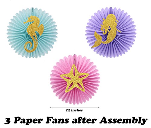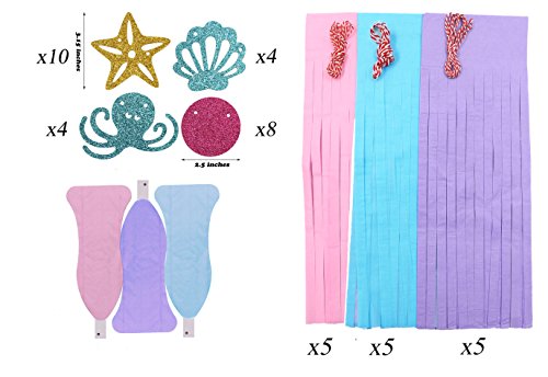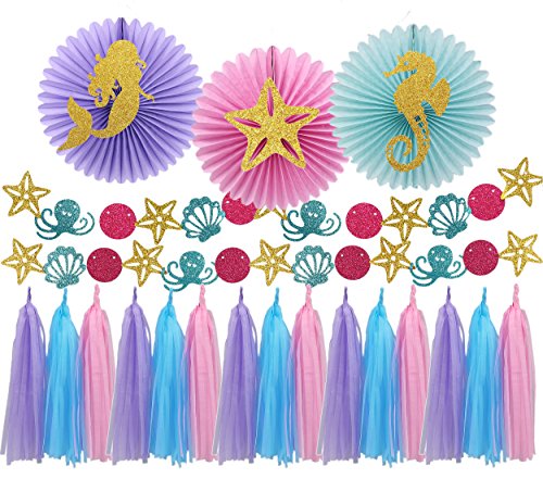 Mermaid Party Decoration Kit, Colorful Funny Paper Fans, Pink Purple & Blue Tassel Garland and Tissue Paper Tassel Undersea World Themed Party Ideas