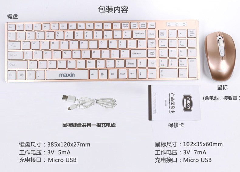 美心 可充电无线鼠标键盘套装 薄款笔记本电脑键鼠套装