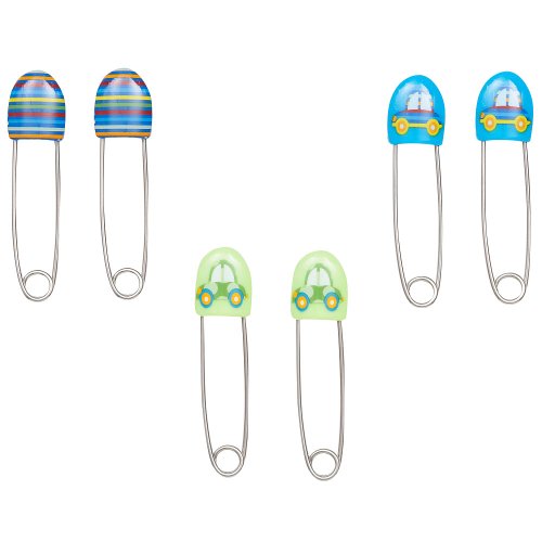 Babies R Us Deco Boys Diaper Pin 6 Pack