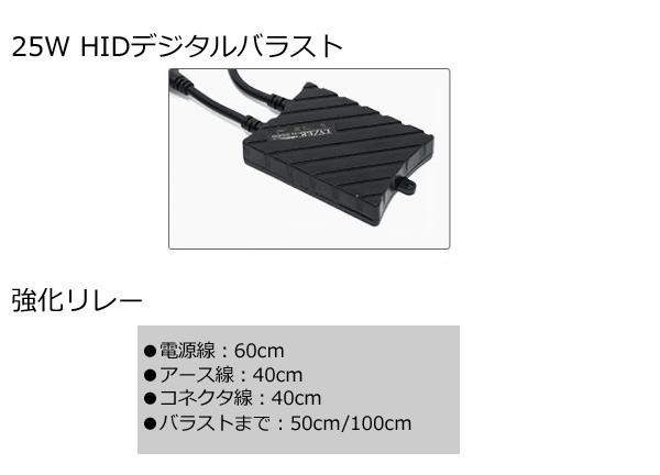 ガス抜けを防ぐ曇りガラス仕様のHIDバーナー、放熱性・安定性に特化したデジタルバラスト、強化リレーなどがセットになっています。