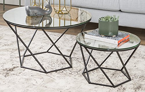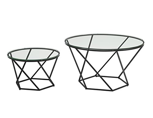 -. Title : WE Furniture Geometric Glass Nesting Coffee Tables - black