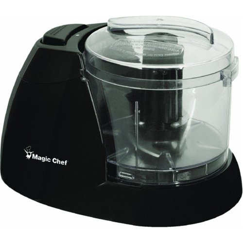 Magic Chef Mini Food Chopper - 1.5 cup work bowl capacity. Stainless steel S-blade chops nuts, vegetables, and more. Easy-to-use, 1-touch pulse control. Safety interlock system. 70W motor. Black. - Capacity: 1.5 Cup, Color: Clear/Black, Pkg Qty: 1, Package Type: Box