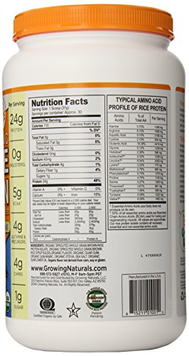 - Title : Growing Naturals Organic Rice Protein Powder, Vanilla, 930 Gram