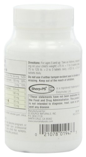 Studies have shown that very active children may have special dietary needs. Source Naturals Attentive Child is designed to support the multiple systems that affect your child's brain metabolism-and kids love the sweet and tart taste! DMAE, a substance normally found in the brain, may be used by the body to make choline, which in turn may be used to make acetylcholine. Magnesium is necessary for numerous metabolic processes and also plays a role in neuromuscular transmission and activity. L-Aspartate, an amino acid, acts as a neurotransmitter. Our grape seed extract provides procyanidins, which have powerful antioxidant activity, and phosphatidylserine is a vital component of cell membranes, including those in the brain. Sharp-PS is a registered trademark of Enzymotec Ltd.Feature