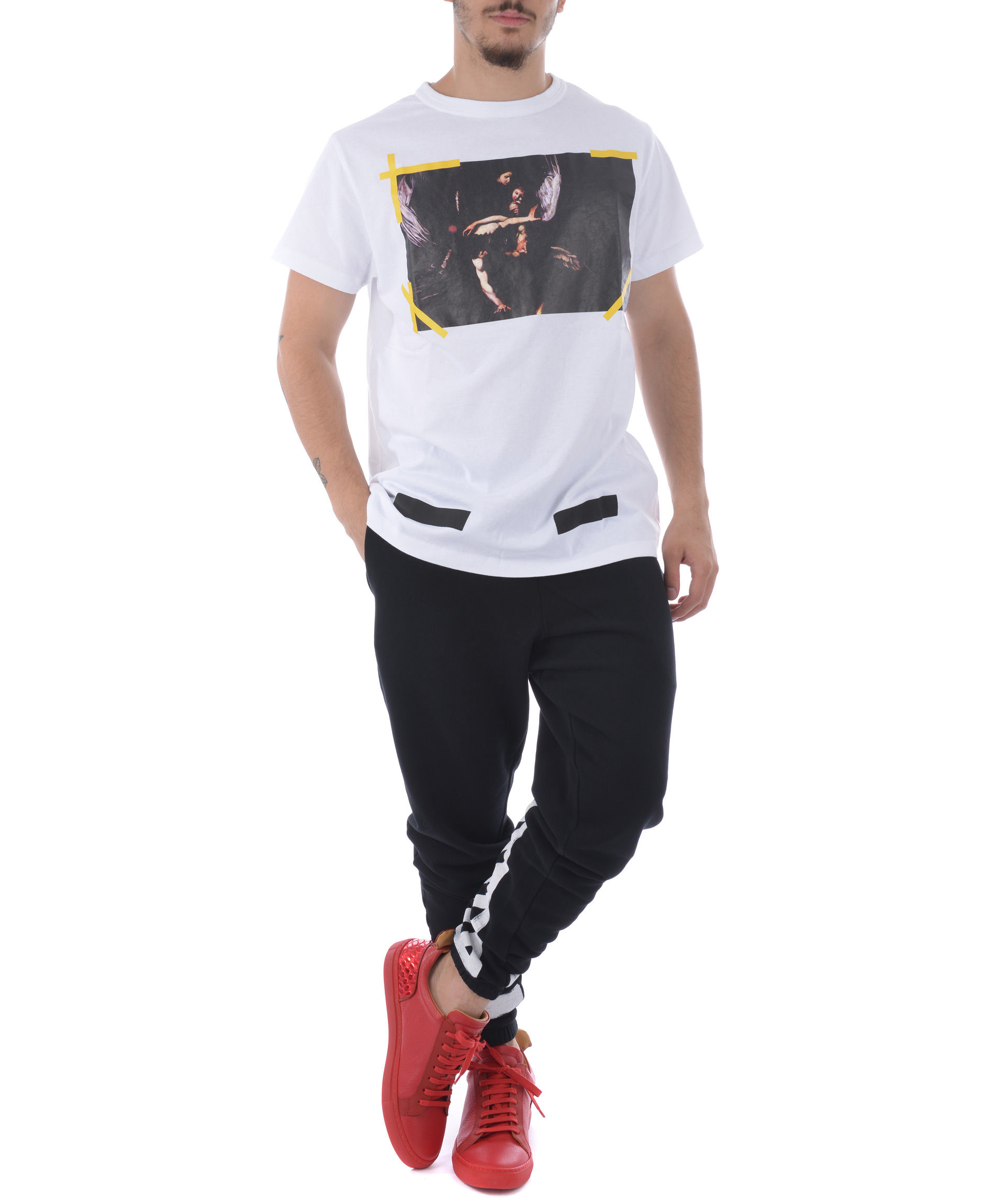 Pantaloni jogging Off White in felpa di cotone Nero. Elastico in vita con coulisse. Tasche frontali a filo. Stampa sul fondo e sul retro. Elastico al fondo. Misura in foto XS 100% cotone